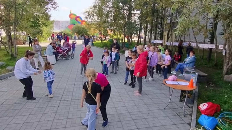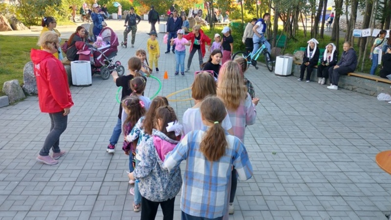 Сотрудники библиотеки подготовили игровую программу для юных оленегорцев «Край, в котором ты живешь». Ребята отправлялись в путешествие по городам Мурманской области. Побывали в столице Кольского края – Мурманске, в Кировске, Апатитах, в столице Северного флота – Североморске, конечной остановкой стал их любимый город Оленегорск. По пути «следования» мальчишки и девчонки делали остановки, на которых вспоминали чем известен этот город, отгадывали загадки, играли в подвижные игры, соревновались на ловкость и внимание. Конечно, зажигательно танцевали, водили дружный хоровод и собирали мозаику из больших кубиков.