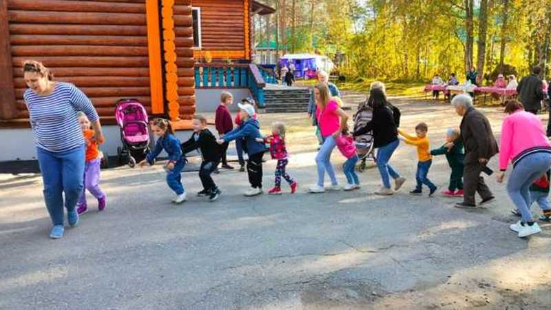 Конечной остановкой стал их любимый посёлок, где в командной семейной эстафете собирали на скорость бруснику.