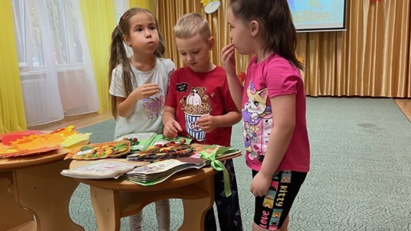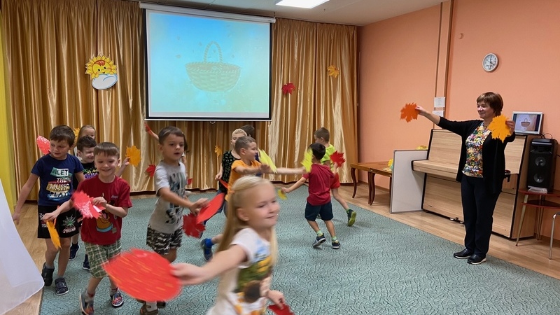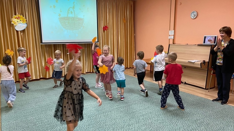 Интересным моментом праздника было разыгрывание дошкольниками осенних миниатюр, например, как медведь благоустраивает берлогу и укладывается в спячку, как белочка делает запасы на зиму.