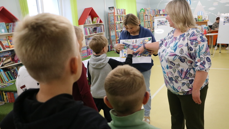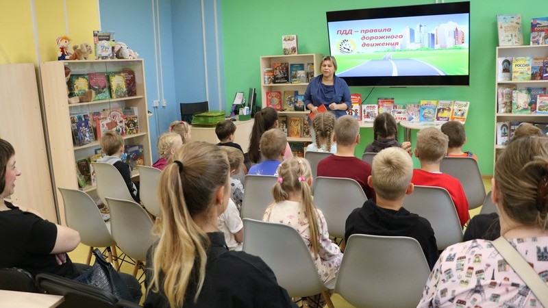 Мальчишки и девчонки вспомнили, как должны вести себя пешеходы, что обозначают дорожные знаки, отгадали загадки весёлой зебры Копытича. Закрепили знания о правилах движения юные читатели в подвижных играх. Заняв места на троллейбусной и автобусной остановках, ребята «выстроили» пешеходную зебру, по которой дружно переходили дорогу, собрали пазлы, скрывающие дорожный знак «Жилая зона», покатались на самокатах по велосипедной дорожке, проехались на автобусе и троллейбусе, соблюдая ПДД, «зажгли» светофоры на переходах.