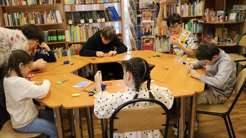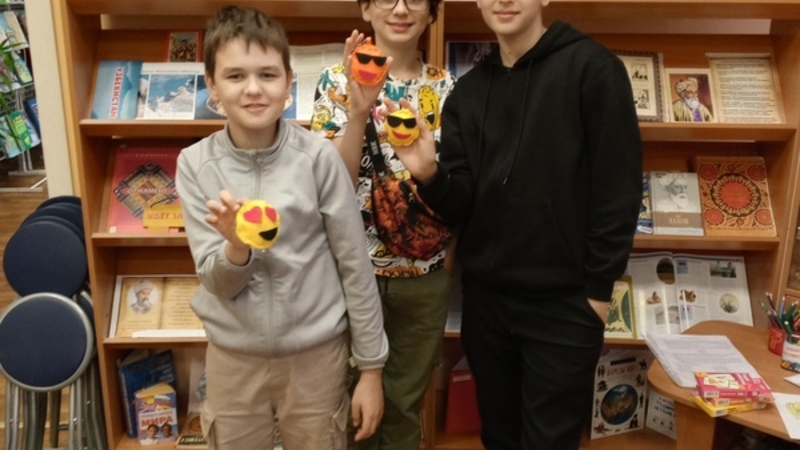 Мальчики и девочки разных возрастов собрались, чтобы сделать оригинальную игрушку и немножко повторить английский. На иностранном языке ребята познакомились друг с другом, вспомнили названия цветов, части тела, изображённые на смайликах.