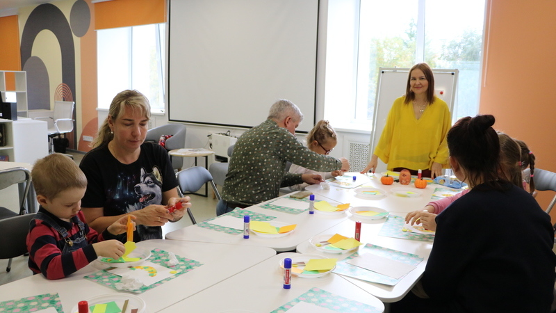 Красота и неповторимость осенней поры вдохновляет на творчество, обязательно хочется сотворить что-то своими руками. Участники мастер-класса с помощью цветной бумаги, картона, флиса и клея увлеченно мастерили открытку с осенним пейзажем, используя в своих работах богатую цветовую палитру осени.