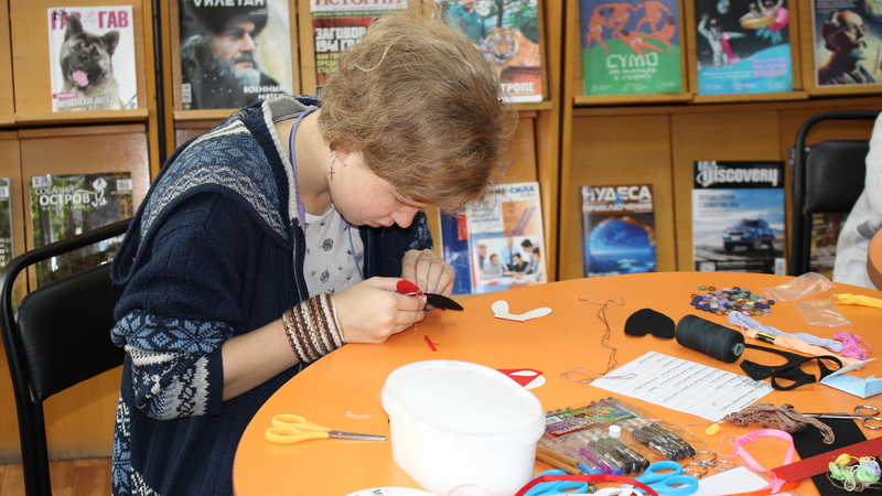 Участники мероприятия смастерили из фетра с использованием ниток мулине и декоративных пуговиц удивительного персонажа. Каждый ЧЧ вышел со своим характером, получил имя и отправился в небольшое путешествие, придуманное гостями библиотеки. Ну и конечно, все чудики нашли свое местечко на сумке или рюкзаке.