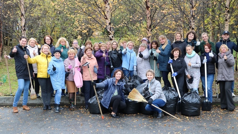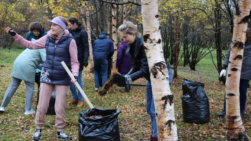 Все вместе энергично мели, гребли, собирали мусор и опавшую листву. Работа спорилась, ведь когда делаешь общее дело – заряд бодрости и хорошего настроения гарантирован!