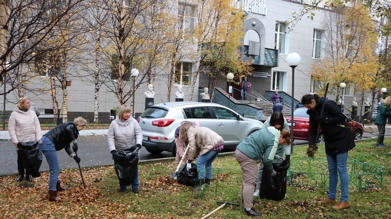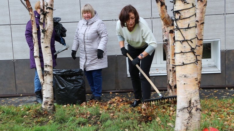 Коллектив библиотеки традиционно принимает участие в подобных акциях, и сегодня, дружно вооружившись метлами и граблями, сотрудники вышли на уборку.
