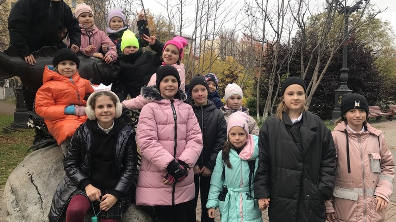 Третьеклассники гимназии №5 вместе с библиотекарем совершили увлекательную пешеходную экскурсию по центру Мурманска, прогулялись по площади Пять Углов, познакомились с ее историей, достопримечательностями, загадали желание у памятника треске, а у капсулы времени пожелали родному городу и через сто лет быть еще краше, наряднее и комфортнее для всех будущих мурманчан.