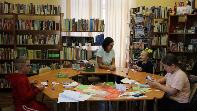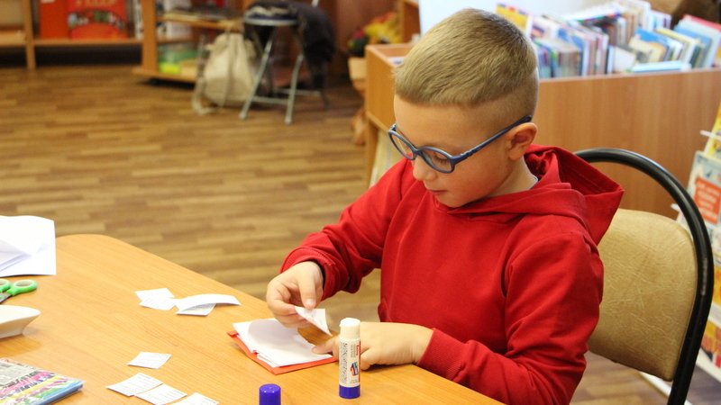 В процессе изготовления поделки ребята рассказали про свои читательские интересы, а сотрудник зала литературы на иностранных языках порекомендовала самые лучшие книжки и журналы, которые помогают разобраться в английском и пригодятся каждому ребёнку, начинающему изучать язык.