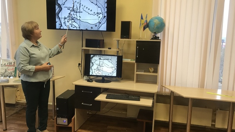 Школьникам из Мурманского политехнического лицея, гимназии №5 и школы №21 Людмила Григорьевна Коновалова рассказала о кровопролитных боях в Мурманской области, о которых до сих пор напоминают окопы, блиндажи, снаряды и останки сотен бойцов.