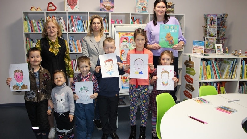 В завершение встречи дети поблагодарили… пап и нарисовали их портреты, так как 15 октября в России отмечали День отца.