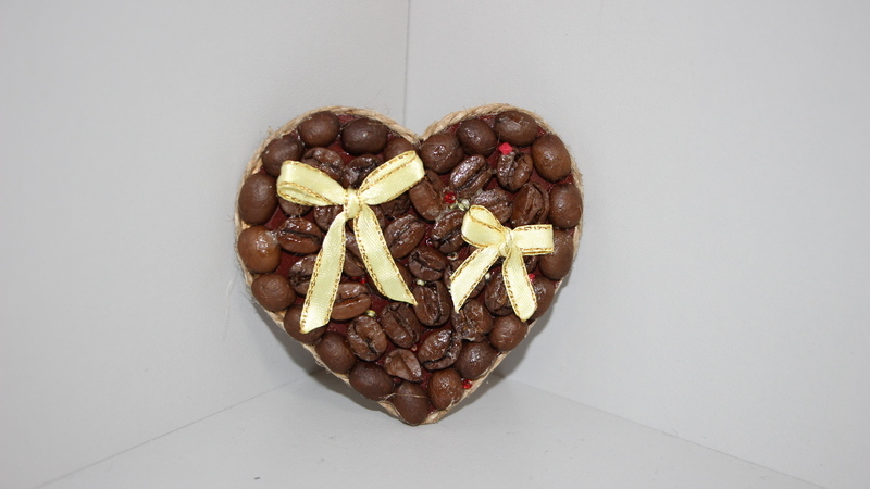 Из обжаренных кофейных зерен делается множество разнообразных сувениров. Участники смастерят эксклюзивные кофейные магниты в виде сердечка. Кроме зёрен кофе для создания магнитов можно использовать всевозможные материалы и специи: джутовый шпагат, мешковину, кружево, атласные ленты, пуговицы, бусины, цветочки бадьяна, ваниль. Все зависит от фантазии.