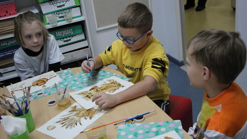 В эту субботу в пространстве «Сопки.Семья» прошло необычное ароматное занятие, на котором юные читатели рисовали осень в нетрадиционной технике кофейной живописи