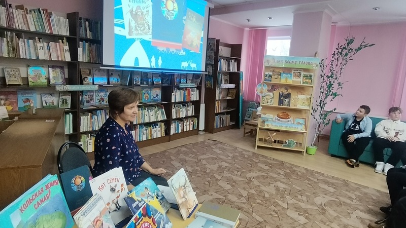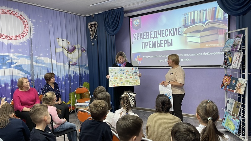 Людмила Григорьевна Коновалова познакомила юных читателей с творчеством известного мурманского поэта Николая Колычева. Прозвучали его стихи из детских книжек «Косолапые ботинки», «Мурманские ступеньки». Продолжая рассказ о мурманских писателях, Людмила Григорьевна представила книги поэтессы Екатерины Яковлевой и сказочницы Татьяны Березюк. Она рассказала, что в детстве эти замечательные писательницы участвовали в Международном конкурсе детской рукописной книги и показала их первые работы. В ходе презентации школьникам была предложена небольшая познавательная викторина «Знаешь ли ты свой край», на вопросы которой ребята отвечали с большим энтузиазмом.