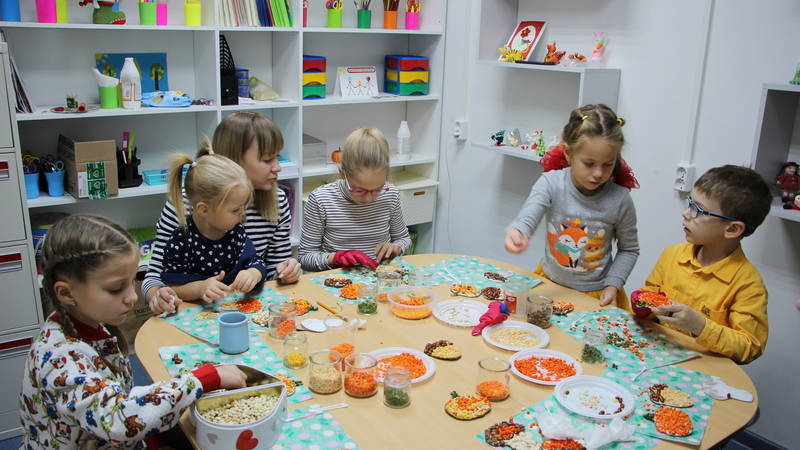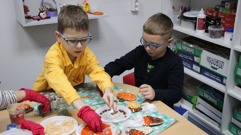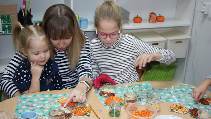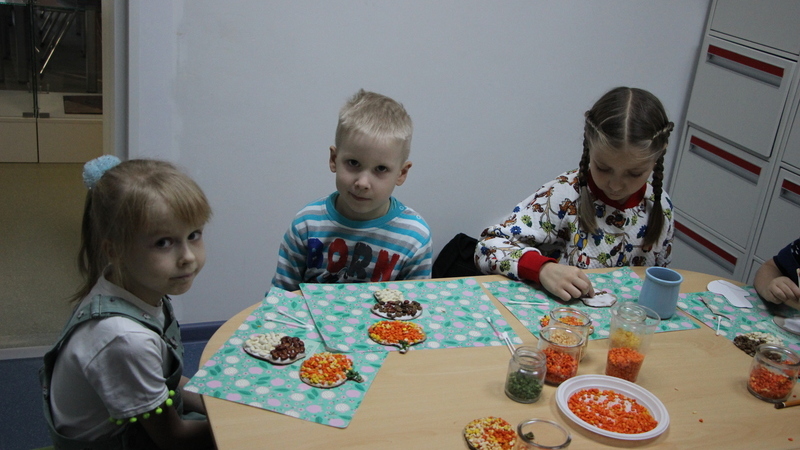 В мастерской юные читатели под руководством библиотекаря создавали поделки из круп.