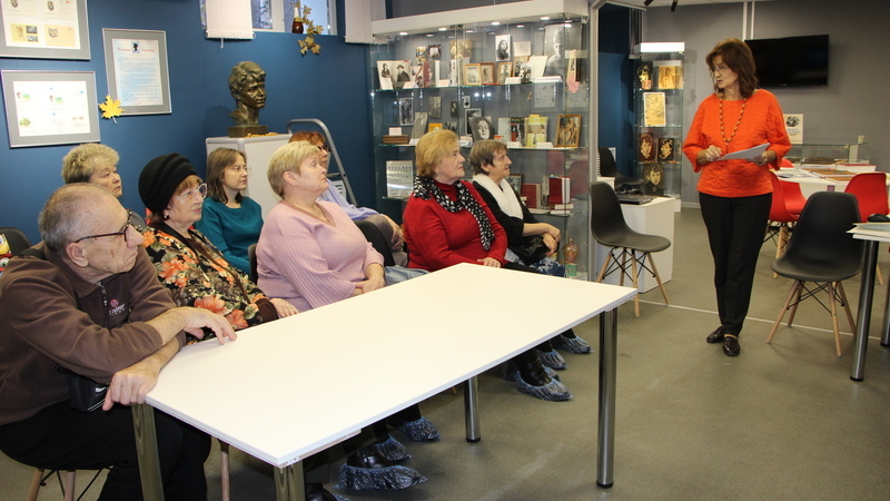 Сначала гости библиотеки побывали в Музее С.А. Есенина и познакомились с судьбой Татьяны Федоровны Есениной. Сергей Есенин посвятил своей матери много проникновенных строк, хотя их отношения складывались непросто. Стихотворение «Письмо матери» и песня на музыку В.Н. Липатова задали тон разговору. Затем слушатели узнали о судьбе Татьяны Федоровны, ее отношениях с родителями, мужем, сыном и дочерьми. Воспоминания родных и односельчан поэта помогли представить облик и характер этой сильной женщины. В исполнении А. Злищева прозвучали стихотворения С. Есенина «Письмо от матери» и «Ответ», не столь хорошо знакомые слушателям, как «Письмо матери». Впервые услышали гости музея и стихотворение – причитание, сочиненное самой Татьяной Федоровной после гибели сына. Завершил встречу просмотр документальных кадров кинохроники, запечатлевших интервью с Татьяной Федоровной в 1955 году.