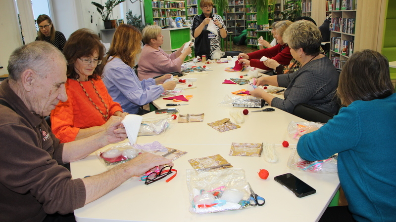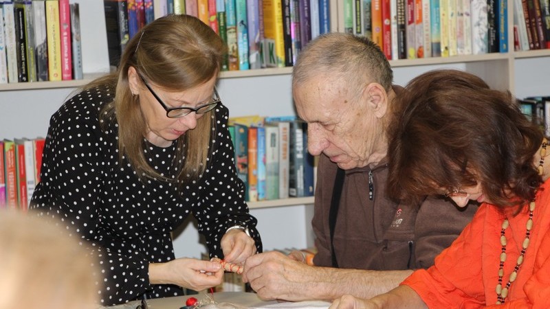 После беседы сотрудники отдела художественной литературы Светлана Владимировна и Любовь Николаевна провели мастер-класс по изготовлению красочной куклы – оберега «Желанница». Работы получились очень красивыми и вызвали много положительных эмоций. За чашкой чая члены клуба обменялись впечатлениями и выразили огромную благодарность организаторам встречи.