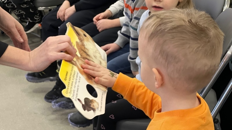 Вниманию дошколят были представлены книги-вырубки, книги из резины, тактильные, пушистые, книжки-подушки, книжки-задвижки, аромакнижка. Ребята гладили шерстку кролика, весело комкали книжку-шуршалку, дружно отгадывали загадки-обманки, играли с умным щенком. Веселая сказка «Волшебное зернышко» рассказала о самом главном – откуда берется хлеб и сколько всего нужно сделать, чтобы испечь ароматный пирог и много других лакомств из муки. А еще в этой книжке ребят ждал аромасюрприз, малыши смогли почувствовать запах вкусного пирога.
