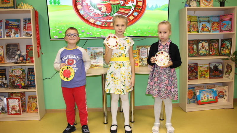 Затем начались веселые соревнования. Юные путешественники разбились на две команды: Бабы-яги и Лешего. Ребята переносили яйца Курочки Рябы, проводили клюшкой Колобка между зверями, кидали стрелы в болото, играли в кошки-мышки, собирали карту-пазл. А затем дружно отправились в сказочную мастерскую и из одноразовых тарелок смастерили волшебное блюдечко с наливным яблочком.