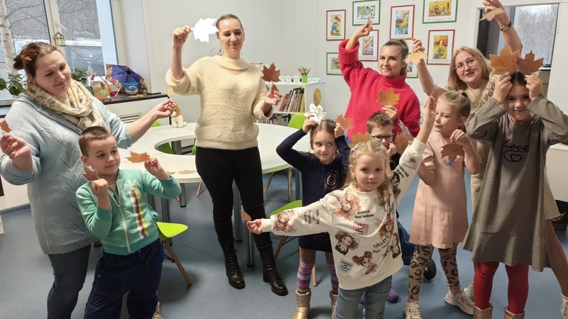 Маленькие читатели подразнили весёлый ветерок, который «то подпрыгнет, а то притаится». С осенним дождиком они отгадывали загадки и читали стихи под зонтиком. Сказочное настроение и большую радость подарили своим детям мамы, танцуя вместе с ними осенний танец. Еще ребята раскрасили главную героиню сказки в технике осенней живописи (кофейное рисование). А маленькому солнечному лучу, заглянувшему в окно, детвора рассказала свои добрые и самые заветные желания. Пусть они исполнятся!