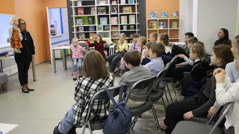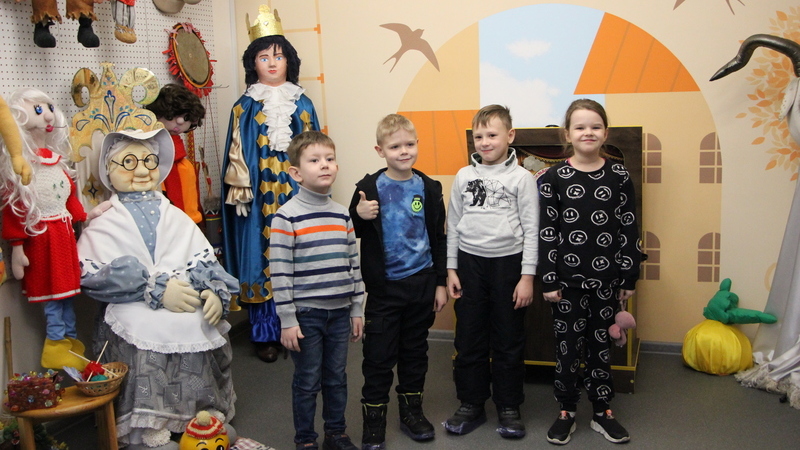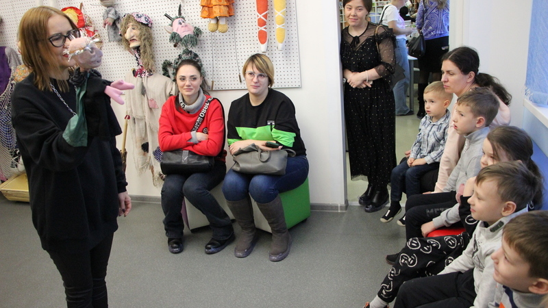 В музее театральной куклы юные читатели с большим вниманием слушали историю его создания. А также познакомились с различными видами театральных кукол, представленных в музее, отвечали на вопросы театральной викторины, отгадывали загадки о сказочных героях. И даже пробовали себя в роли артистов-кукловодов. Примеряли маски и управляли куклами, передавая интонацией характер сказочного персонажа. Особенно ребятам понравилась большая напольная кукла – знаменитая Баба-яга.