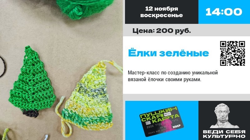 Для этого потребуется совсем немного: моточек пряжи любимого цвета, крючок и желание творить. Под руководством библиотекаря каждый участник свяжет оригинальную елочку, которая может стать как украшением интерьера, так и идеальным новогодним подарком для близких или друзей.