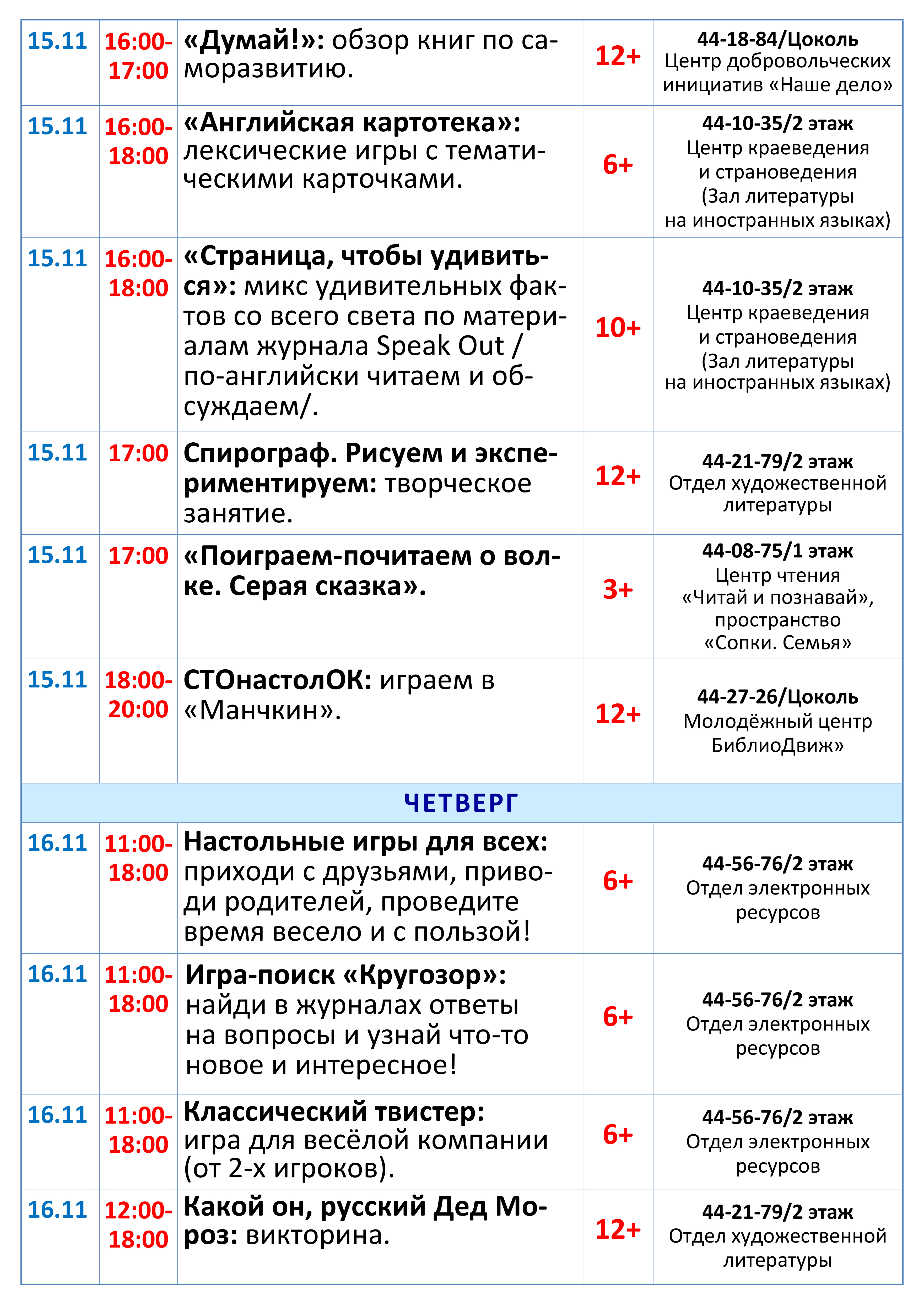 Ежедневно в отделе электронных ресурсов мальчишек и девчонок ждут аэрохоккей, настольный футбол, дженга, дартс, конструкторы и еще много разнообразных настольных игр.