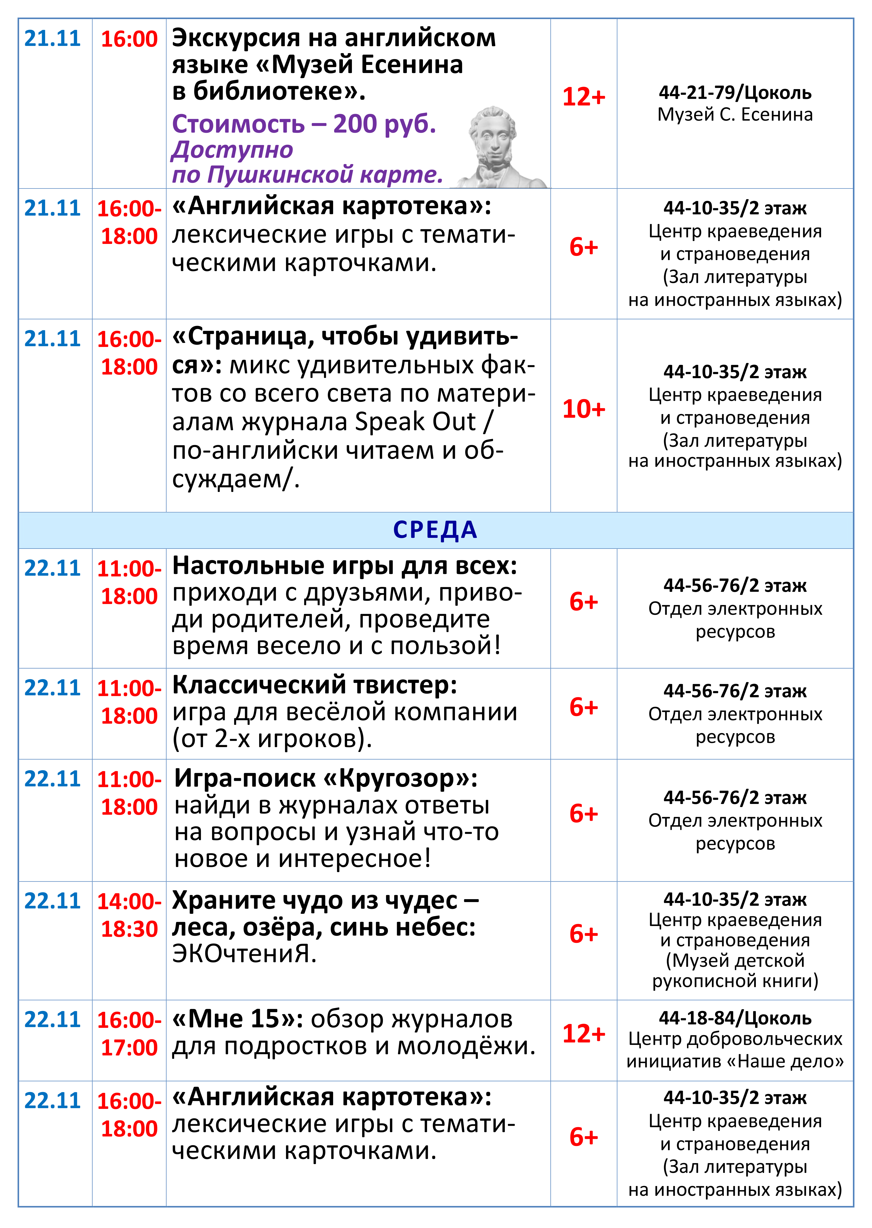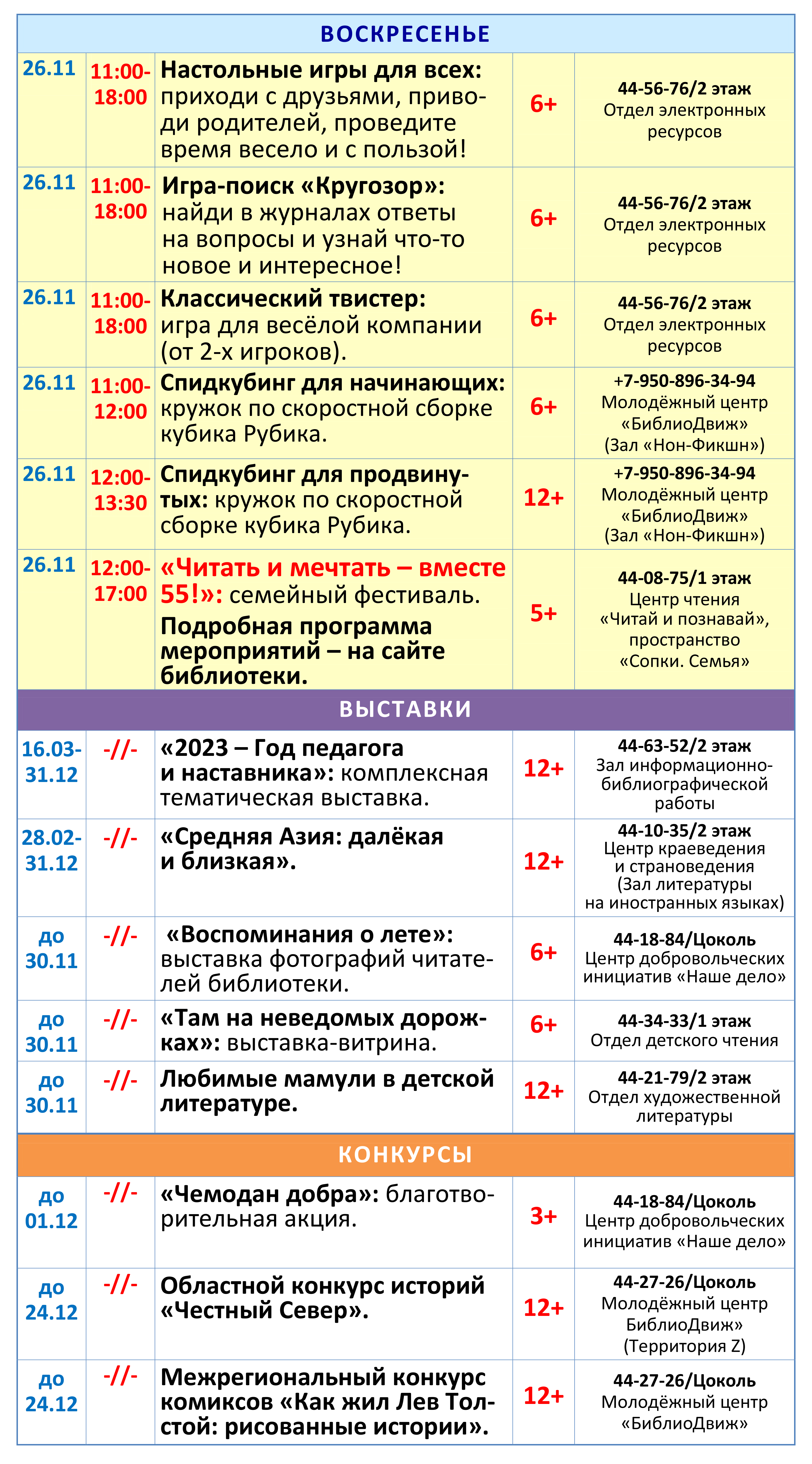 ВНИМАНИЕ! В программе возможны изменения! Уточняйте, пожалуйста, информацию по указанным в афише телефонам.