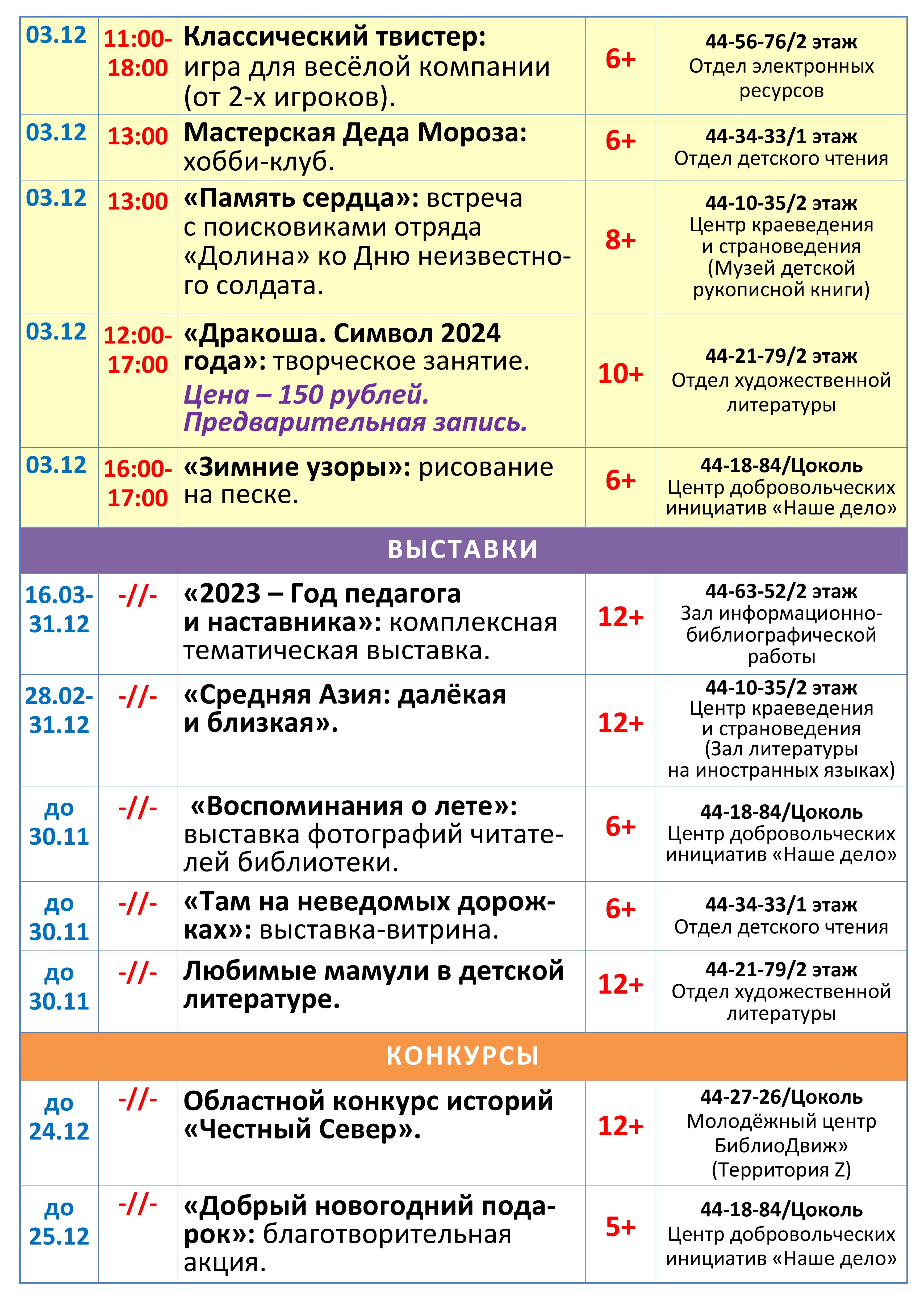 ВНИМАНИЕ! В программе возможны изменения! Уточняйте, пожалуйста, информацию по указанным в афише телефонам.