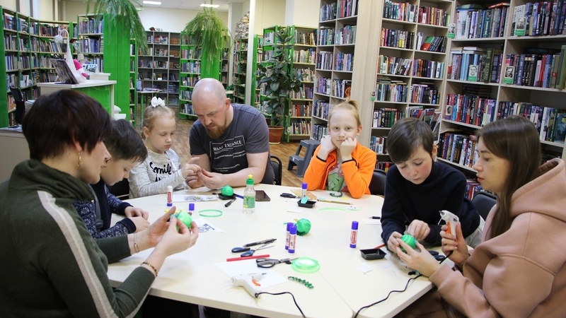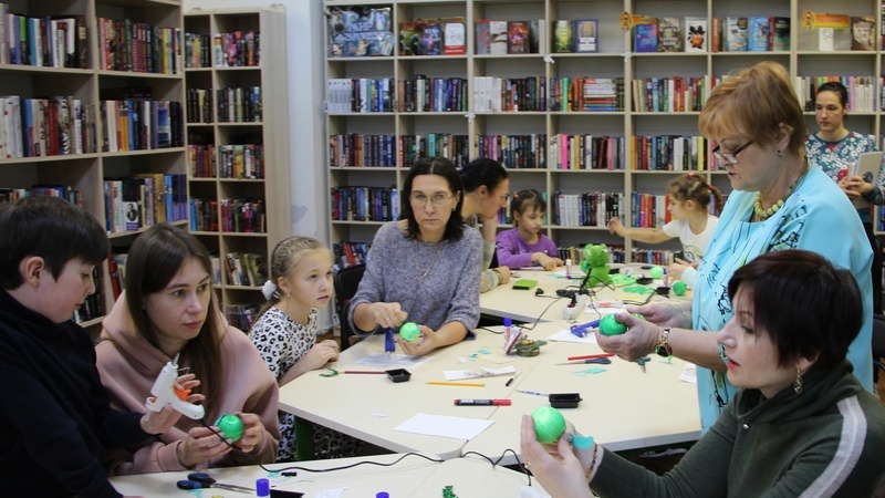 Из белых пенопластовых шаров и зеленых атласных ленточек получилось сказочное чудо. Участники постарались на славу. Их дракончики обзавелись роскошными блестящими гребнями. Дракоши получились улыбчивые и дружелюбные.