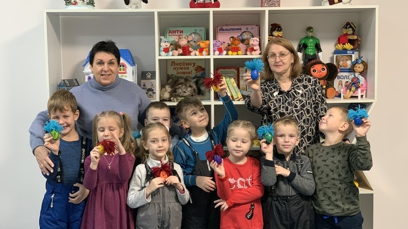Под руководством феи-Психеи каждый маленький читатель из шариков и цветных ниток сделал себе игрушку-антистресс «Капитошка» и подружился с ней.