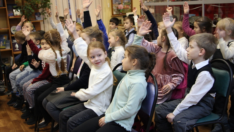 Первоклассники без труда отвечали на вопросы новогодней викторины, с удовольствием угадывали новогодние песни и мультфильмы, а также с энтузиазмом спели «В лесу родилась елочка», «Расскажи, Снегурочка, где была» из мультфильма «Ну, погоди!» и другие известные песни.