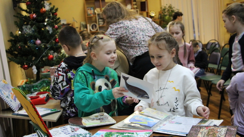 Особый восторг школьников вызвали экспонаты из музея детской рукописной книги, рассказывающие о новогодних и рождественских праздниках. Впечатлили ребят книга в форме новогоднего подарка и книга, выполненная на виниловых пластинках.