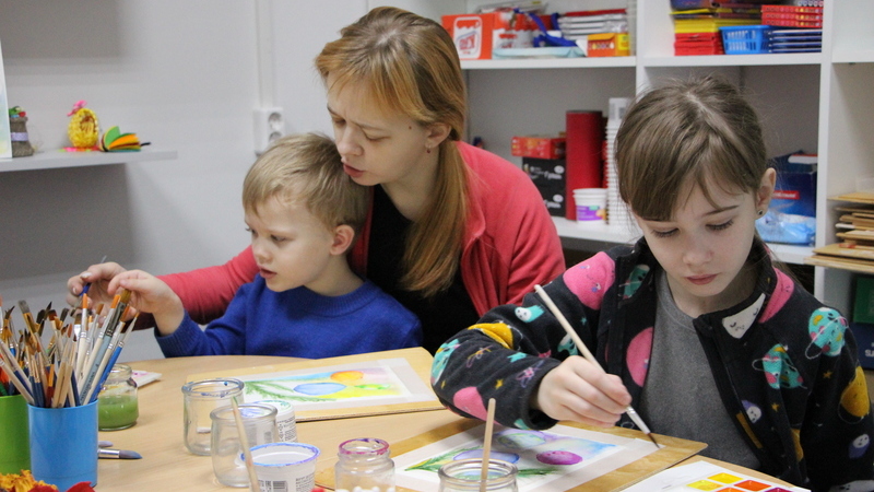 В пространстве «СОПКИ.СЕМЬЯ» ребята готовились к празднику и рисовали новогоднюю открытку акварельными красками. Яркие красивые елочные шары заблестели на работах юных художников. В уютной обстановке мастерской Мэри Поппинс ребята творчески провели время, создав красивый подарок своими руками.