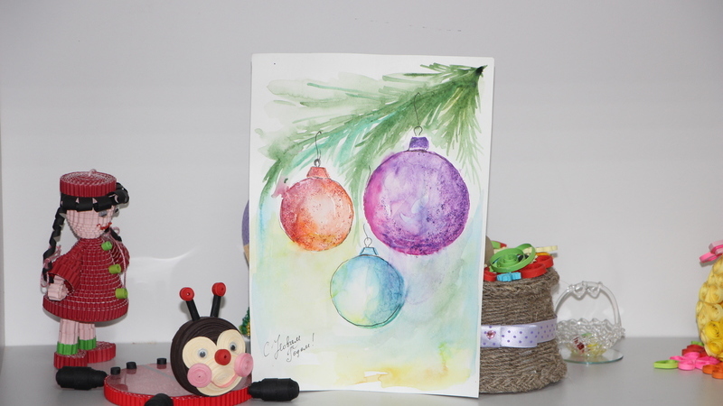 Скоро наступит Новый год, и подготовка к празднику в самом разгаре. Все готовят подарки, украшают дом, выбирают и устанавливают елку. Уже можно достать елочные игрушки и полюбоваться ими. А можно взять краски и нарисовать красивые елочные шары на пушистой ветке.