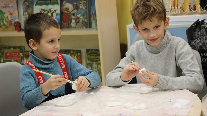 Преподаватель Наталья Александровна Было рассказала о своем увлечении, об истории елочных украшений из ваты, поделилась секретами их изготовления. Мастерская Деда Мороза предоставила детям уникальную возможность научиться творить новогодние шедевры из ваты. Под руководством Натальи ребята мастерили игрушку-гномика. Работа оказалась не простая, на создание маленькой фигурки потребовалось целых два занятия.
