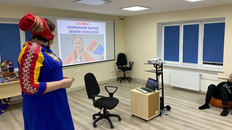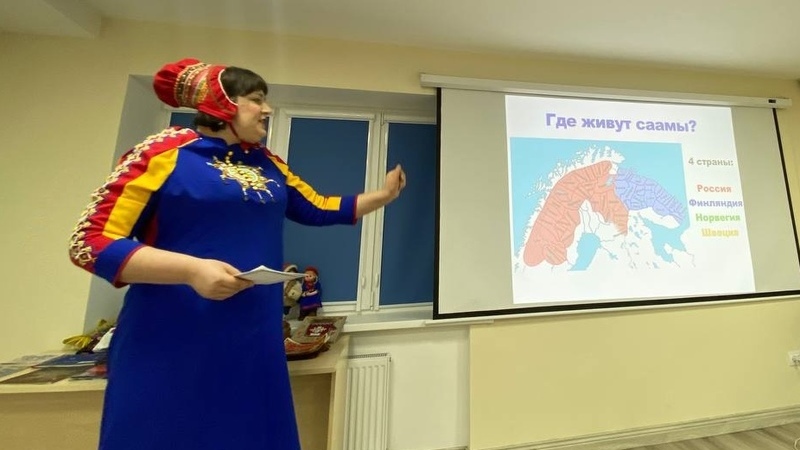 Темой встречи были заявлены саамы как малый народ крайнего севера: их флаг и территория проживания, национальный костюм и его цветовая символика, виды жилищ и промыслы, традиции и верования, легенды, сказки, загадки и даже рецепты.