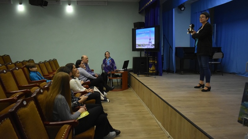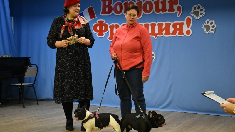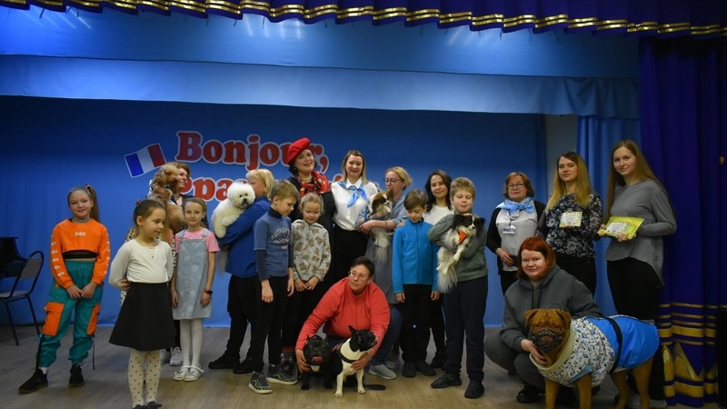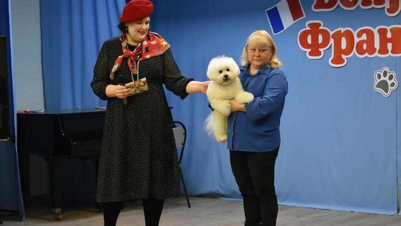 Преподаватель из Мурманской языковой школы разучила с гостями несколько французских фраз и команд для собак, прочитала французский стишок о щенке.