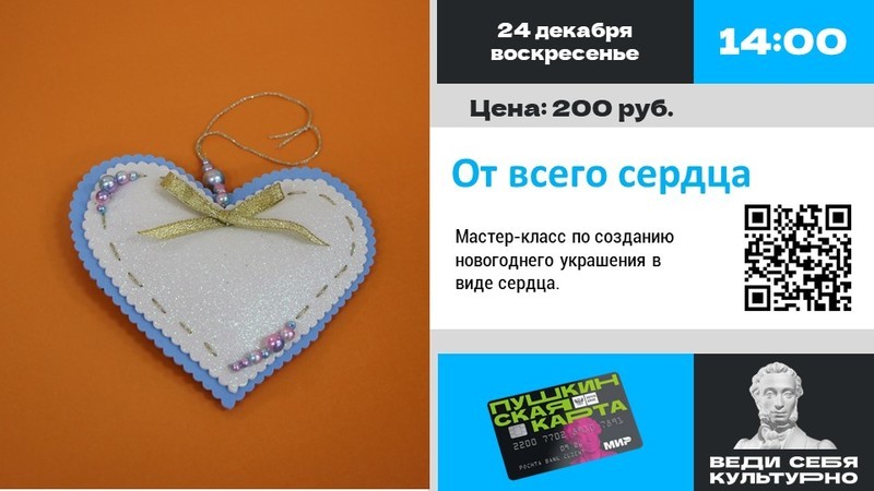 Мероприятие платное – 200 рублей. В стоимость мастер-класса включены все необходимые материалы. Количество мест ограничено. Доступно по Пушкинской карте.