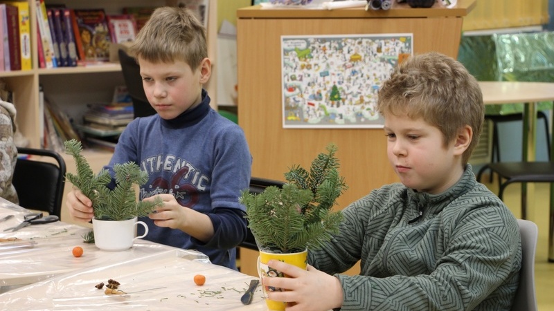 Ребята поделились как готовятся к волшебному празднику, какие традиции празднования есть в каждой семье. Библиотекарь рассказала о том, как празднуют Новый год в странах, где нет ёлок, какие деревья наряжают, какие угощения готовят. Все вместе выяснили, что в нашей стране Новый Год пахнет ёлкой, мандаринами, шоколадом, и... волшебством! А потом сделали ароматную новогоднюю композицию, в которой украсили веточки нобилиса апельсинами, мандаринами, конфетами, звёздочками бадьяна, шишками и блестящими шарами. Теперь в доме маленьких мастеров поселится новогодняя композиция с ароматом волшебного праздника!