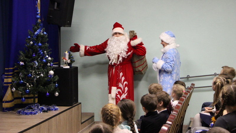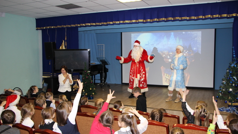 Всё самое таинственное и весёлое случилось во второй части представления, когда на праздник к школьникам заглянули Дед Мороз и Снегурочка. Прежде чем подарить подарки ребятам, они устроили им веселый экзамен с загадками, фотовикториной, вопросами из истории Новогодья.