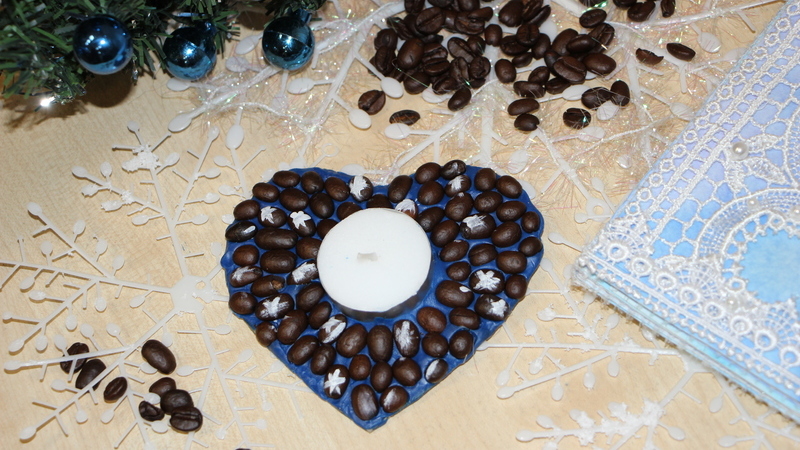 Участники творческого занятия сделают оригинальный светильник из картона, пластилина и, конечно, ароматных зерен кофе. В центре поделки разместят плавающую свечку. В процессе работы ребята не только создадут стильный и неповторимый подарок, но и зарядятся энергией и рождественскими эмоциями, а также настроятся на позитивный лад.