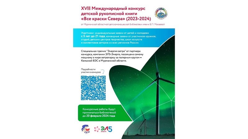 Ждем ваши книги в рамках специальной премии «Энергия ветра» компании ЭЛ5-Энерго. Дополнительные баллы смогут получить проекты, в которых будет воссоздана модель ветроустановки Кольского ветропарка.