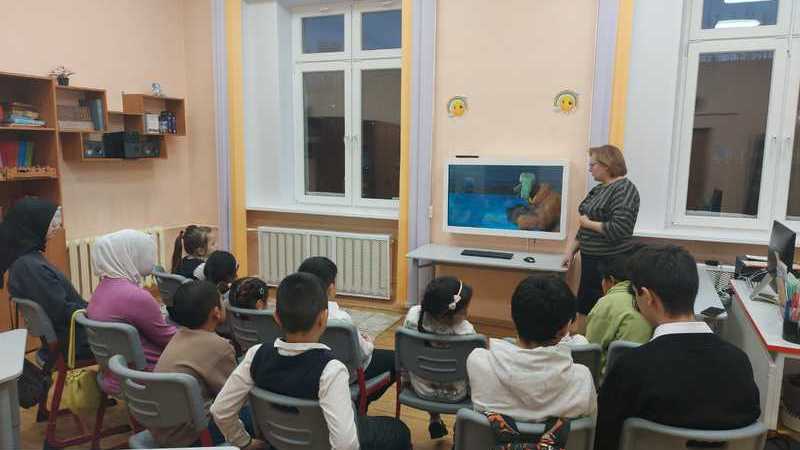 Юлия Александровна Яшина, ведущий библиотекарь центра, рассказала ребятам о морях, омывающих Кольский полуостров, и почему Баренцево море считают самым теплым из всех северных морей, о городах Мурманской области и самых старых поморских селах, о народах, издавна населявших Кольский полуостров – саамах и поморах. Дети с удовольствием рассмотрели поморские козули и послушали историю их создания. Они узнали о минералах Колькой земли, а аметист, эвдиалит и амазонит смогли подержать в руках. Самыми зрелищными оказались видеосюжет о саамском футболе и небольшая видеоэкскурсия по Снежной деревне.