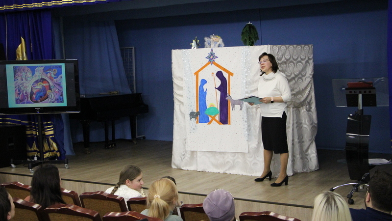 В течение всего вечера звучали песни и стихи на тему Рождества, и красивая музыка дарила всем присутствующим в зале праздничное настроение.