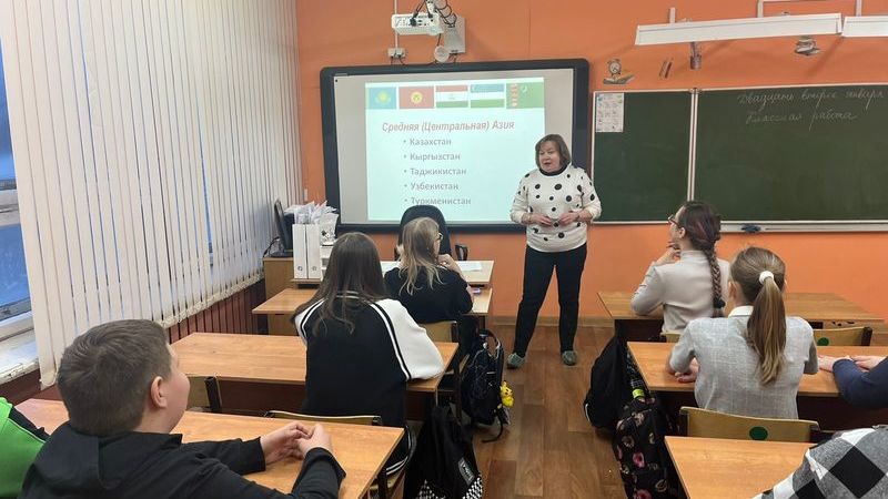 На этот раз говорили о странах Центральной Азии: Казахстане, Кыргызстане, Таджикистане, Туркменистане и Узбекистане. Ребята познакомились с историей и символами этих государств, с их культурой и традициями. Удивление вызвали великие имена и выдающиеся достижения науки и литературы древней таджикско-узбекской цивилизации. Школьники послушали мудрые четверостишия знаменитого таджика Омара Хайяма, а в конце встречи ответили на вопросы двух викторин.