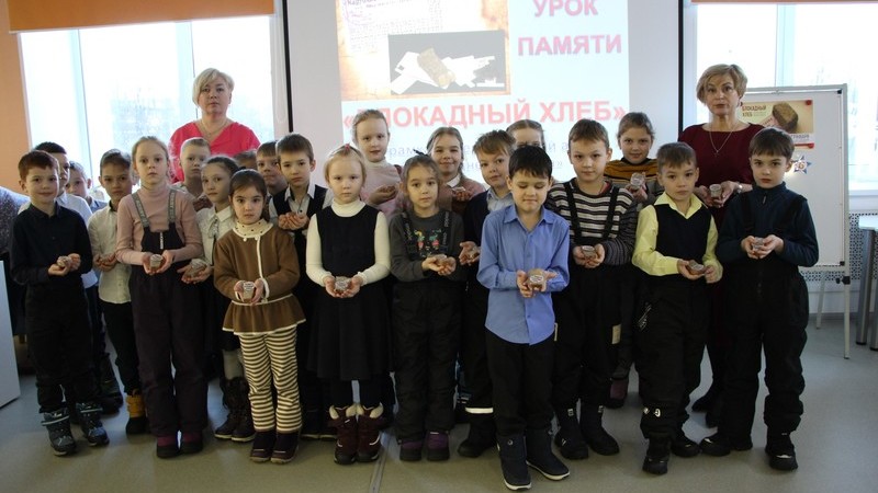 В конце занятия школьники, держа на своих маленьких ладошках 125-граммовый кусочек ржаного хлеба, почтили минутой молчания солдат, погибших освобождая Ленинград, водителей Дороги жизни и жителей Ленинграда, не переживших страшную блокаду.