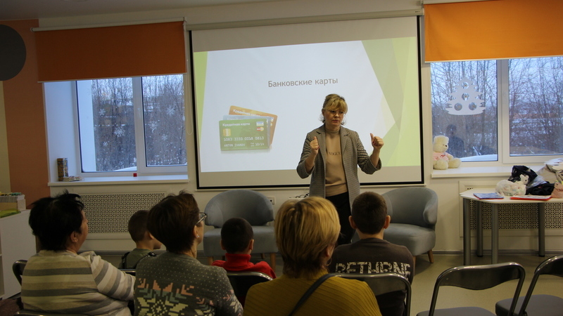 В путешествие по Стране финансов ребята отправились вместе с Еленой Леонидовной Гайдуковой, главным экономистом экономического отдела Отделения Банка России по Мурманской области. На этот раз юные северяне и их родители погрузились в историю популярного банковского продукта – пластиковой карты, и изучили внешний вид современных денег.