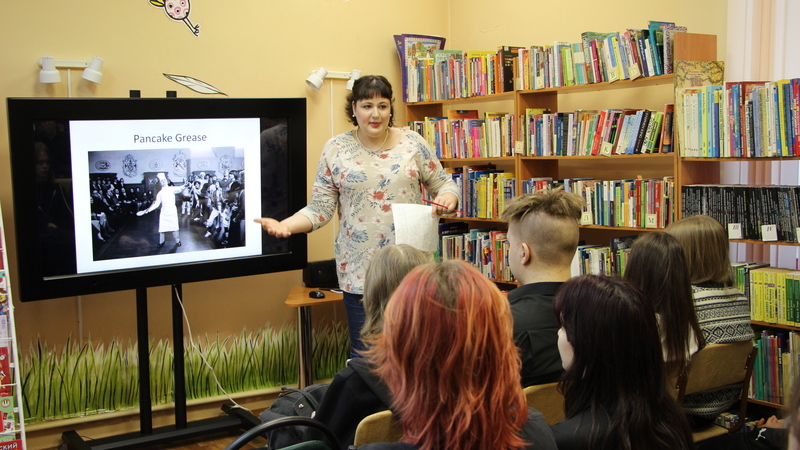 А дальше пополнили свои знания о культуре страны изучаемого иностранного языка. Библиотекарь Ольга Александровна Дерябина рассказала, кому помогают в День красных носов, как появилась традиция забега с блинами, для кого проводится День картошки, как отмечают День святого Патрика по всему миру, откуда в Великобританию пришли танцы Морриса, какие состязания проводятся на Играх Хайленда, почему привидения – часть английской культуры и что нужно сделать в День летнего солнцестояния, чтобы привлечь богатство и счастье. Рассказ дополнялся красочными видео о фестивалях, ведь лучше один раз увидеть, чем сто раз услышать! Ученики остались довольны таким необычным уроком английского языка.