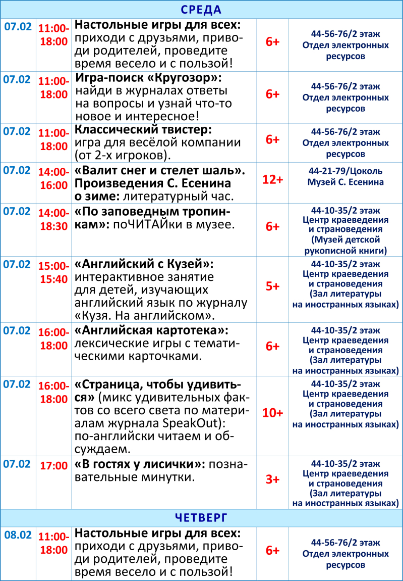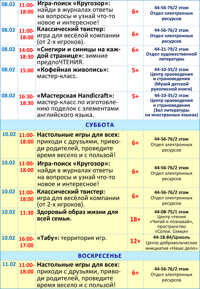 Обращаем внимание! В программе возможны изменения! Уточняйте, пожалуйста, информацию по указанным в афише телефонам.