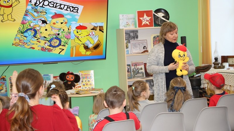 Воскресное литературно-творческое занятие было посвящено юбиляру это года – журналу Мурзилке, в мае ему исполнится целых сто лет. Библиотекарь рассказала присутствующим о солнечном персонаже, который неизменно присутствует на обложке вот уже более полувека и о том, как выглядел главный герой в разные годы, а также, почему журнал занесли в Книгу рекордов Гиннеса.