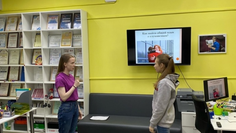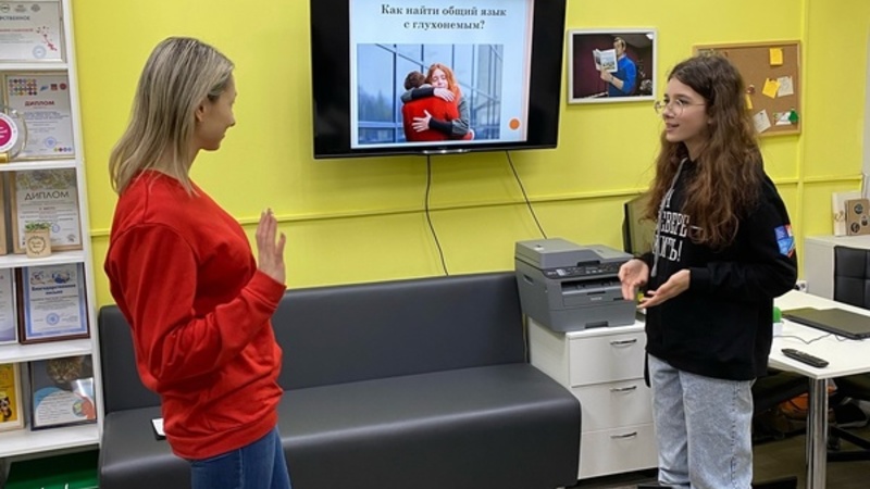 Участники мастер-класса продолжили изучение основ русского жестового языка. Читатели библиотеки разучили полезные и важные жесты, которые необходимо знать при первом знакомстве, слова вежливости, обозначения цифр и дактиль (алфавит). Разбившись на пары, участники выстраивали диалог, называли свое имя, узнавали текущие дела и выражали признательность за помощь.